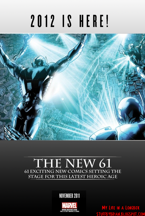 I make a reference back to a earlier "event" that Marvel made a big deal over: The Heroic Age. That "age" is only like a year or two old. I did think about referencing another similar "event" they did: The Dark Reign by saying 61 exciting new comics setting the stage for who reigns in this new age but I thought it would be too long & kind of hokey. I wasn't sure I even wanted the word "exciting" in there for a thought that the tag line might be too long with it.